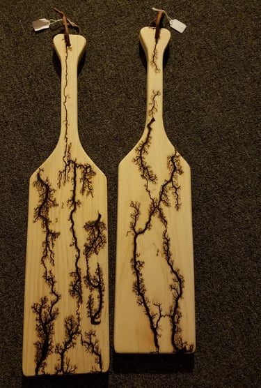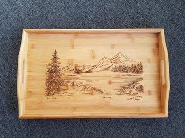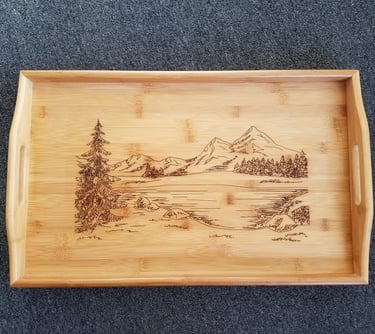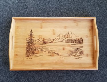 Explore our wide range of custom wood creations, including wall hangings, ornaments, small tables, and more. Each piece is carefully created using a variety of materials such as wood, plastics, slate, epoxy and river tables, as well as fractal burning techniques.